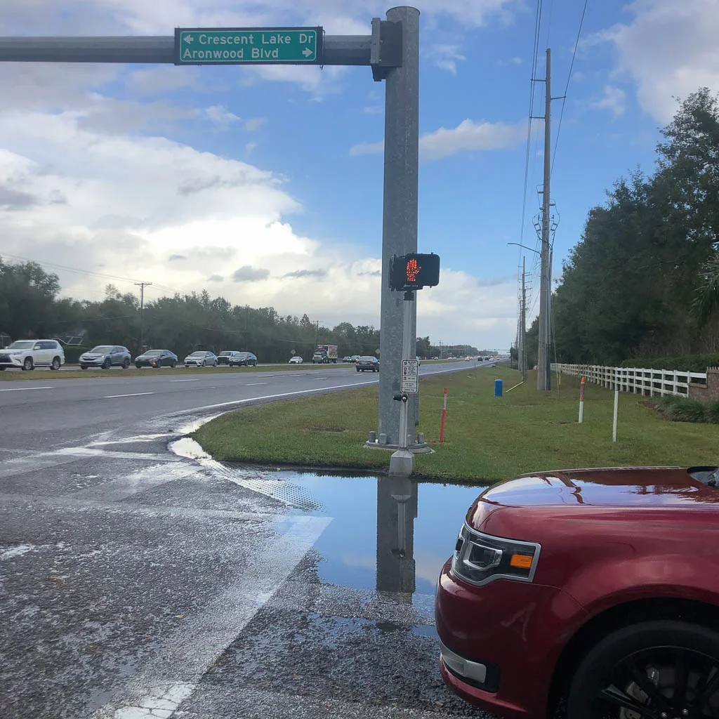 Riding back along BBD at Oak Preserve, the light was red for me so I slowed down. The cars turning left had gone and their light turned red. I started to pedal again and a car came flying out and I couldn't stop. I braked but bumped into the side of his car and went down. I bumped my head and twisted my handlebars. Apple Watch knew I fell down and asked if I needed help. I apologized to the driver forgetting that the light was red for him. I fixed my handlebars and rode home. I have a bump on the back of my head. That's a good sign right?